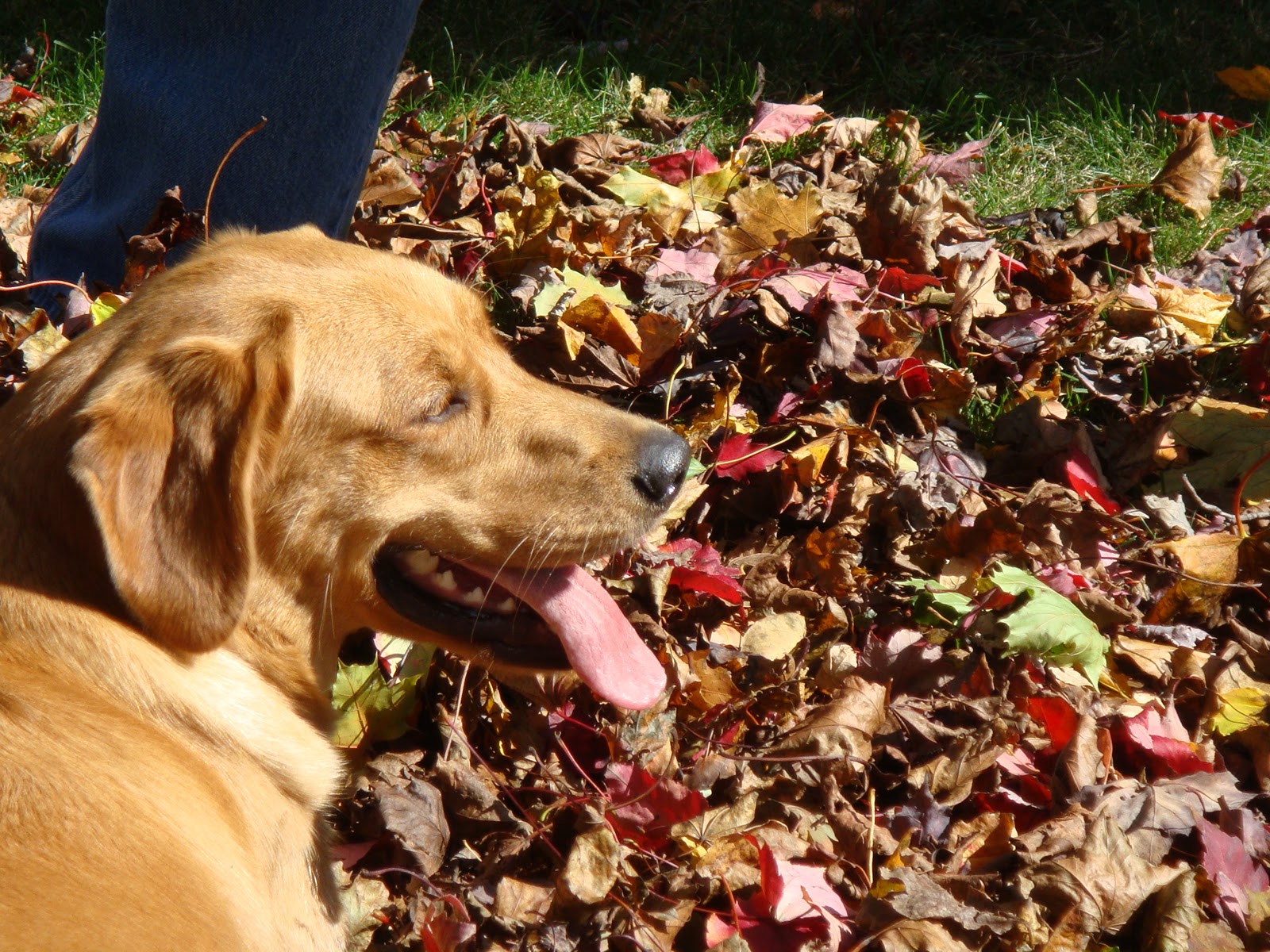 me: Don't you just love this time of year when the leaves fall and mom and dad put them in a nice big pile for you to jump in? That's why they do it, right?!
