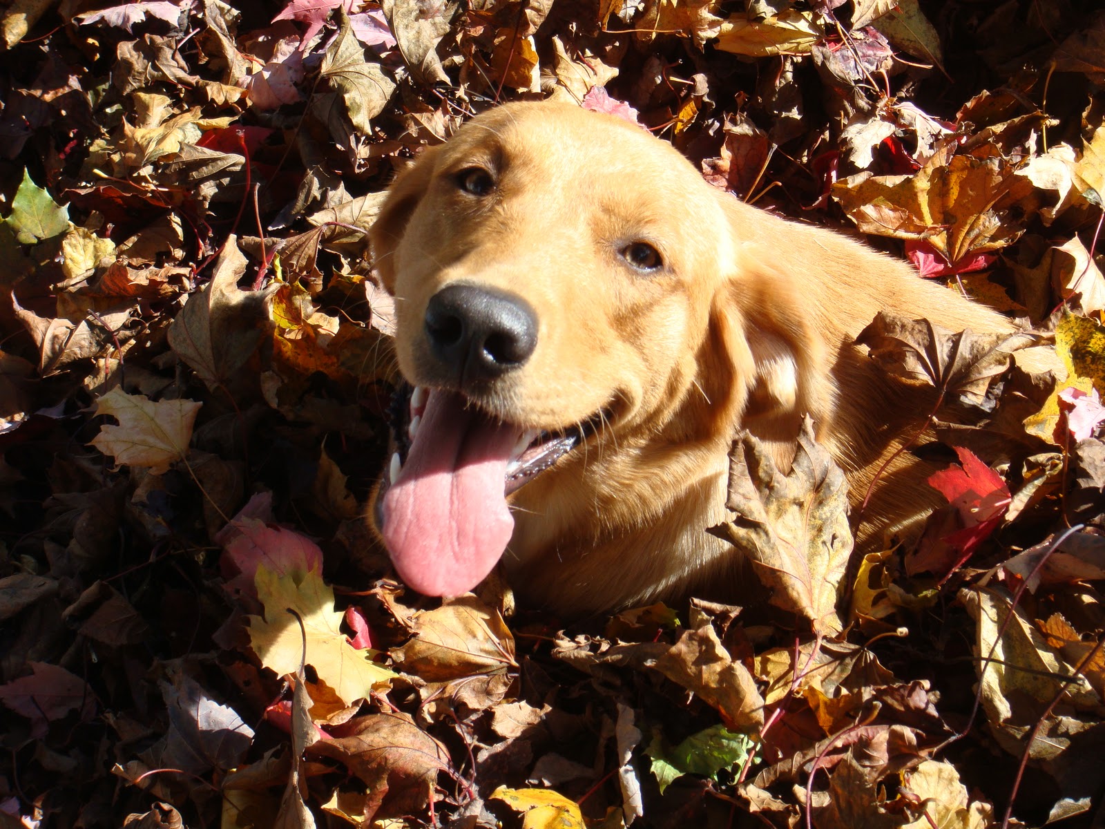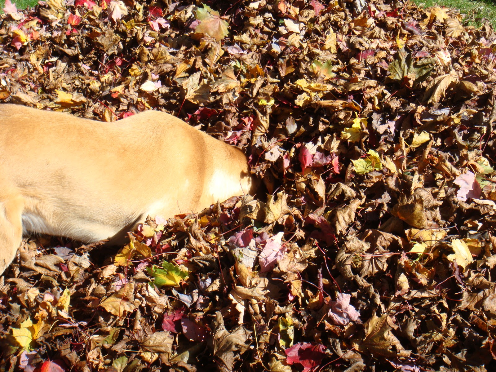 myself: Yup! Look at Maggie playing hide n' seek in the leaves! What is she seeking?