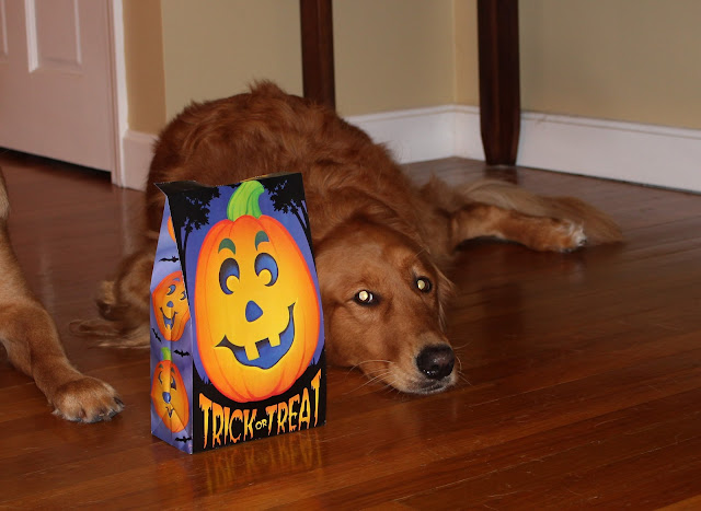 There IS a bright side to this, mom still gave us our treats tonight and we didn't have to get dressed up into silly costumes....yet. Instead we decided to show everyone our zombie eyes in hopes that mom will forget all about dressing us up...