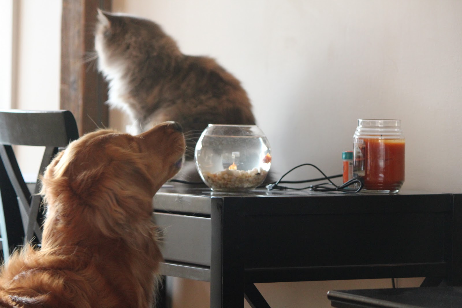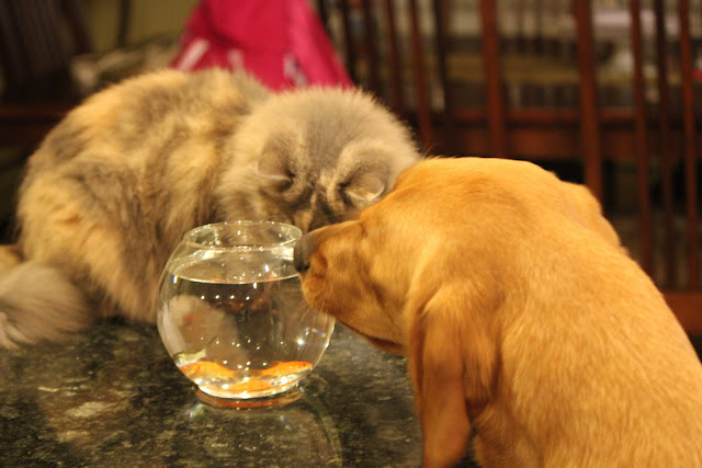 We love how they cuddle, play, sneak us dinner scraps, how they always seem to leave their snacks around for us to finish up and how they try to sneak us into their beds at night.