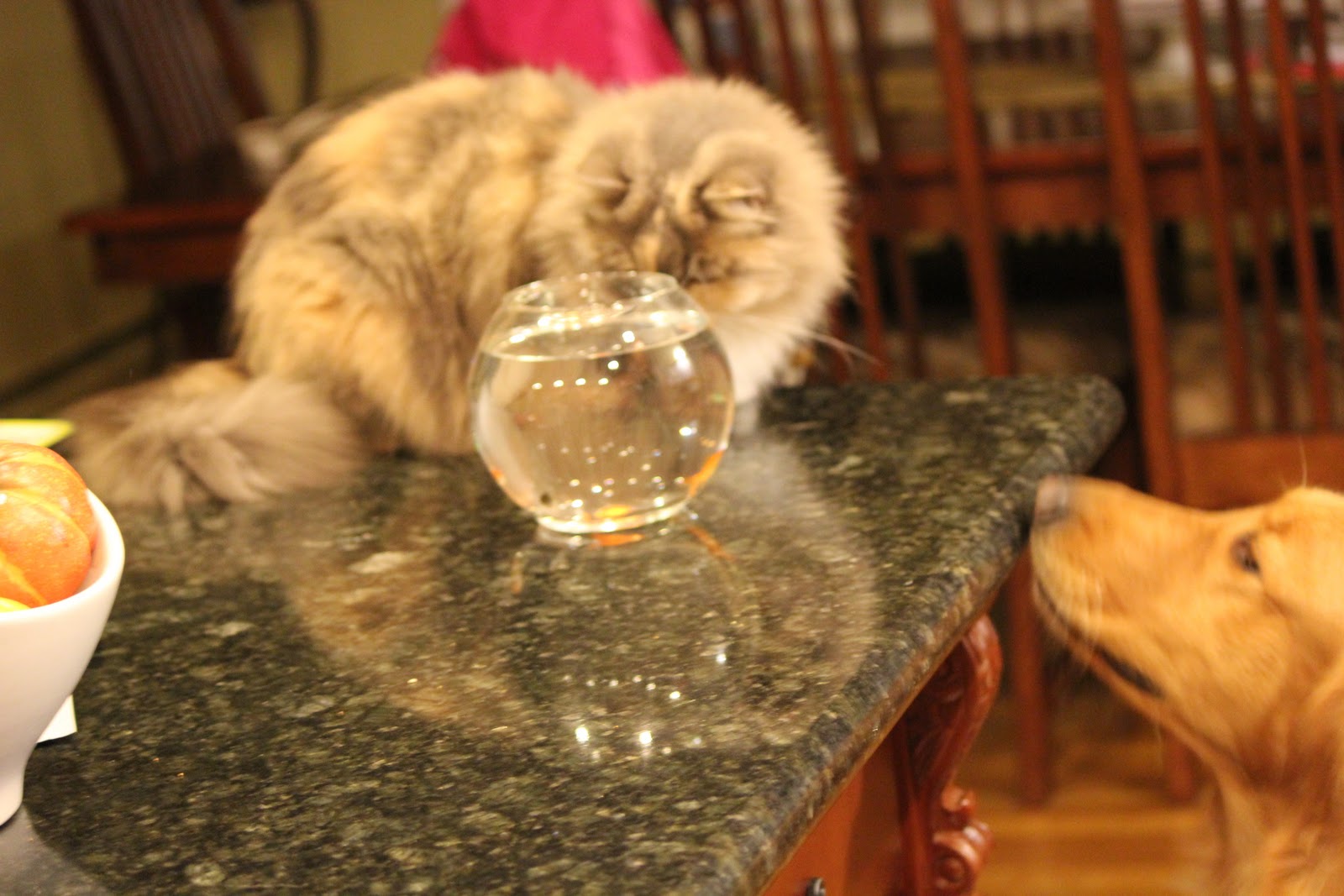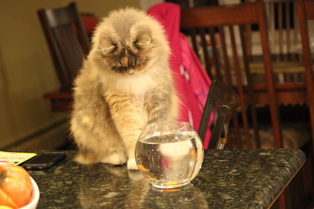 First there were 4 then dad put 2 in the giant "bowl" of water and they went round and round till suddenly there were gone?!?!?!